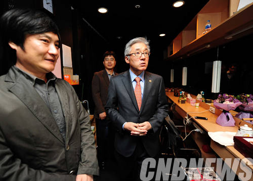 ▲김종덕 문화체육관광부 장관이 1일 서울 대학로에 위치한 소극장(아트원시어터)를 방문해 공연장 관계자들과 무대 · 전기 · 소방시설 등을 점검하고 있다. (사진=문화체육관광부)