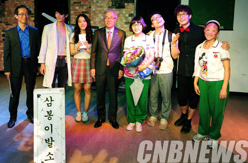 김종덕 문화체육관광부 장관이 1일 서울 대학로에 위치한 소극장 안전 점검을 마친 뒤에 대학로 JH아트홀을 방문해 연극 ‘삼봉이발소’를 관람했다.