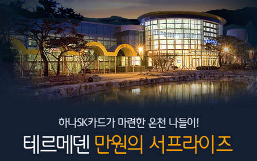 11월 한 달간, 하나SK카드 모든 고객(체크카드 포함)들은 경기도 이천시에 위치한 독일식 온천리조트 테르메덴 전체시설 이용권을 최대 70% 할인 받을 수 있다.