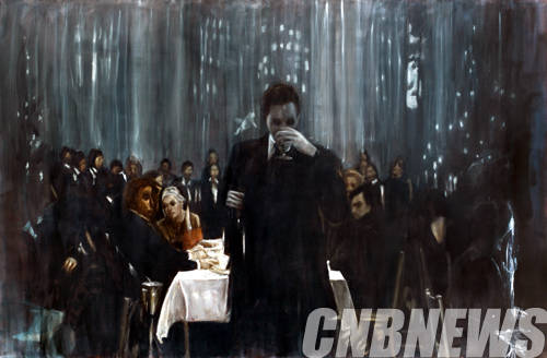 ▲악셀 가이즈, 'Man in front of table'. oil on canvas, 190x290cm, 2014.(이미지=갤러리바톤)