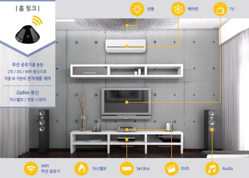 이에 개별 스마트 가전제품이 없어도 홈링크만 설치를 한다면 TV, 셋톱박스, 에어컨, DVD 등의 전자 제품을 스마트폰으로 간단하게 원격 제어할 수 있다. 옵션 상품으로 준비된 사물 인터넷(IOT)을 접목시킨 전등 스위치, 가스 밸브 차단기는 양방향 통신 센서를 탑재하여 보다 완벽한 스마트 홈 환경을 만들어 준다.