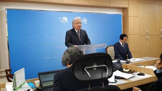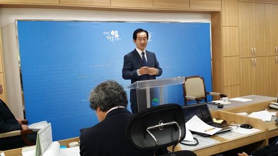 ▲기자간담회를 통해 의정부예술의전당의 관광객 유치위한 상설공연 추진 계획에 대해 언급하고 있다.