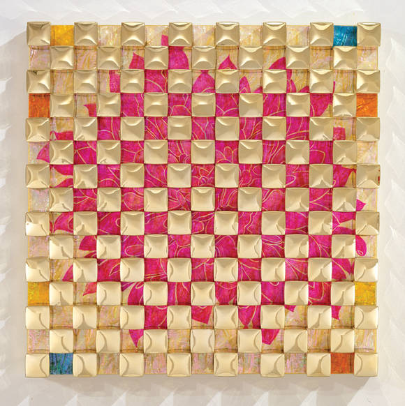 금과 자개를 이용해 볼록한 금빛 큐브 형태를 만드는 채은미 작가가 소아암 돕기 후원전에 참여한다.