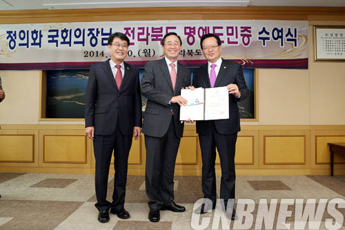 정의화 의장은 11월 10일 오후 1시 10분 전라북도청에서 송하진 전라북도지사로부터 ‘전라북도 명예도민증’을 받았다. 전라북도 명예도민은 전북 발전에 기여한 인물을 도에서 추천, 전북도의회가 심의해 수여한다.