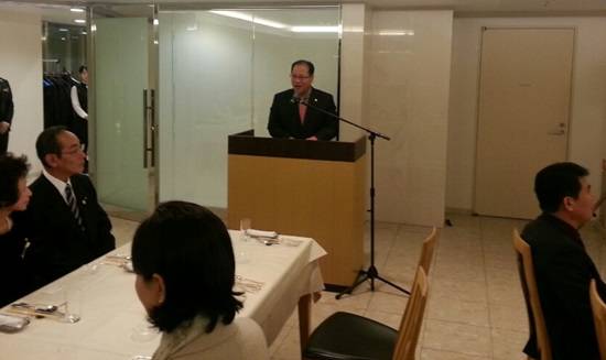 ▲하코다테시의회에서 인사말을 하고 있는 선재길 고양시의회 의장