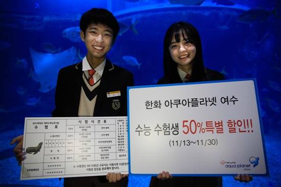 한화호텔앤드리조트(대표 홍원기)는 아쿠아플라넷 일산, 여수, 제주에서 13일부터 30일까지 수능 수험생을 대상으로 '용감한 할인' 등 '특별 할인이벤트'를 실시한다고 밝혔다.