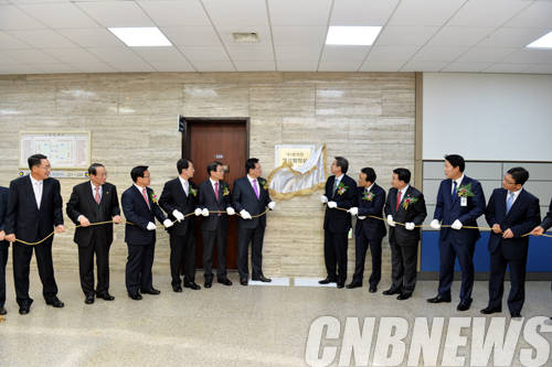 ▲정의화 의장은 11월 11일 오후 2시 국회 본관 220호에서 열린 영상회의실 현판식 및 영상회의 시연회에 참석했다.(사진=국회)