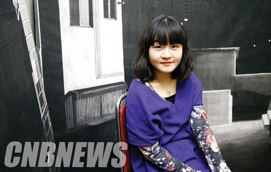 ▲먹으로 장지에 작업하는 이채영 작가.(사진=CNB포토뱅크)