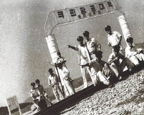 ▲1955년 수색훈련비행장 준공 당시 항공대생들의 모습. (사진=항공대 화보집)