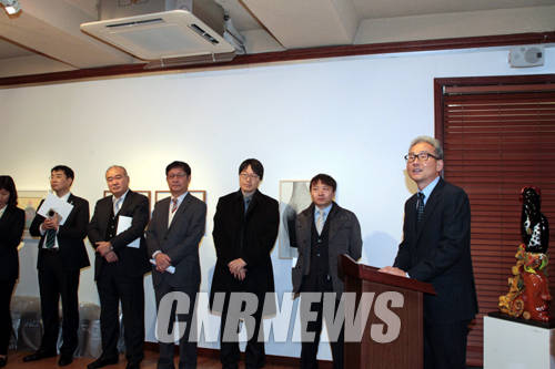 ▲13일 오후 서울 종로구 통의동 진화랑에서 개최된 CNB미디어 소아암 돕기 후원전 오프닝에 황용철 CNB미디어 대표가 인사말을 하고 있다.(사진=왕진오 기자)