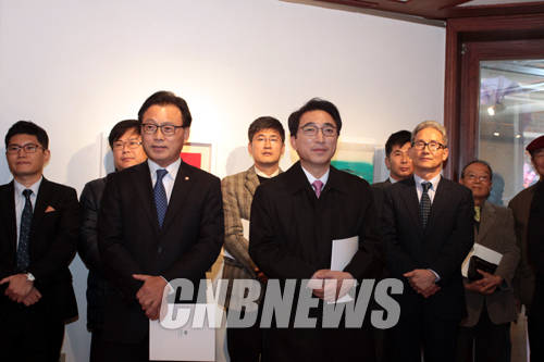 ▲13일 오후 서울 종로구 통의동 진화랑에서 개최된 CNB미디어 소아암 돕기 후원전 오프닝에 행사에 박광온 새정치민주연합 의원(좌측)과 박수현 새정치민주연합 의원이 함께했다.(사진=왕진오 기자)
