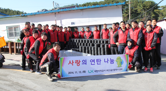 LX대한지적공사 부산울산본부(본부장 홍용성)는 지난 13일 부산 동구 범일동 안창마을 20가구에 연탄 2천장을 전달하는 ‘사랑의 연탄나눔’ 행사를 가졌다.