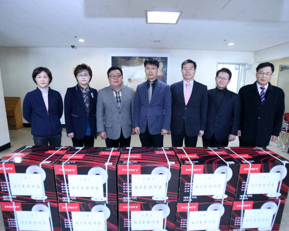 KT홍천지점(지점장 신원선)사랑의 봉사단 5명은 지난 14일(금) 관내에 생활이 어려운 다문화 가정에게 지원해 달라며 난방기구(전기난로) 10대를 다문화가족지원센터(센터장 윤성일)에 전달했다.