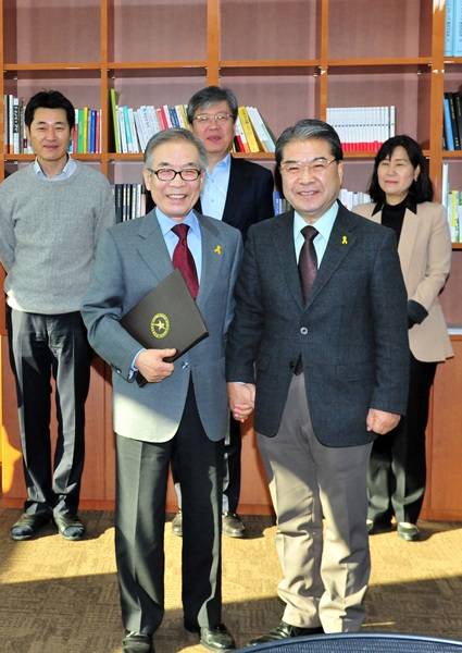 이재정 경기도교육감은 14일 오전 교육감 접견실에서 김상근 신임 (재)경기도교육연구원 이사장에게 임명장을 수여했다.