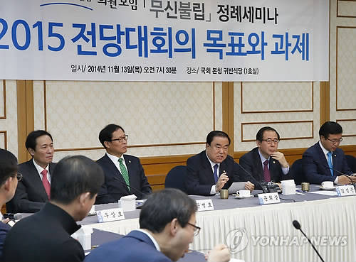 ▲새정치민주연합 문희상 비대위원장이 13일 오전 국회에서 열린 '무신불립' 정례 세미나 '2015 전당대회의 목표와 과제'에서 모두 발언을 하고 있다.(자료사진=연합뉴스)