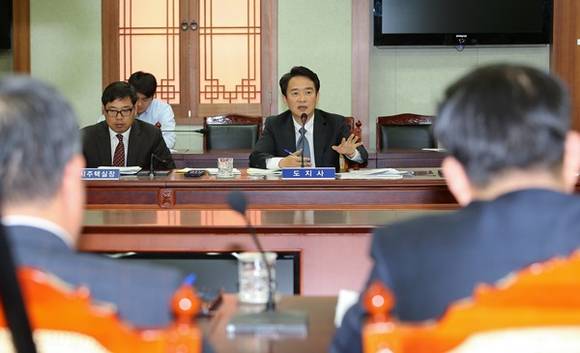 ▲남경필 경기도지사가 지난 18일 경기도청 상황실에서 열린 ‘경기도 동부권역 시장 및 군수 간담회’를 주재하고 있다.(사진=경기도 제공)