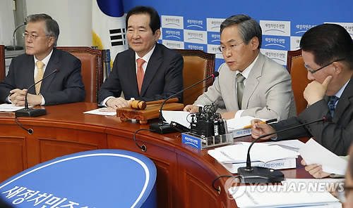 ▲새정치민주연합 우윤근 원내대표가 19일 오전 국회에서 열린 비상대책위원회의에서 모두 발언을 하고 있다.(사진=연합뉴스)
