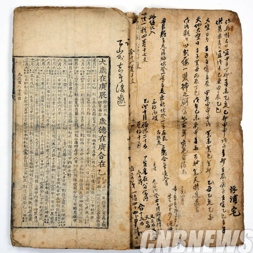▲보물 제1319호 '경진년 대통력(庚辰年 大統曆)'. 1579년, 국립민속박물관 소장.