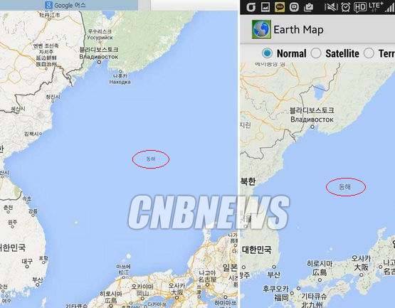 맵스든 어스든 국내에서 접속하면 한반도와 일본 사이 바다는 ‘동해’로 나타난다. 하지만 접속 위치가 외국일 경우 ‘일본해’로 검색된다. 독도도 마찬가지다. 한국에서 접속하면 ‘독도’지만 외국에서는 ‘리앙쿠르 암초’ 등으로 명기돼 있다.