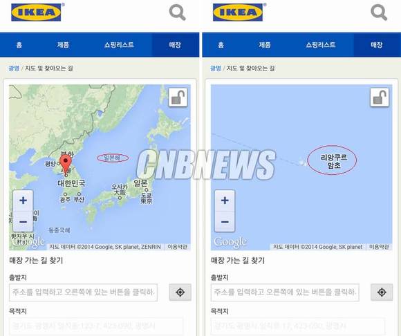 이케아 관계자는 19일 CNB와 통화에서 “모바일 버전에서의 위치정보는 구글 맵을 기반으로 하기 때문에 일본해 표기의 수정이 원천적으로 불가능하다”며 “향후에도 수정계획이 없는 것으로 알고 있다”고 전했다.