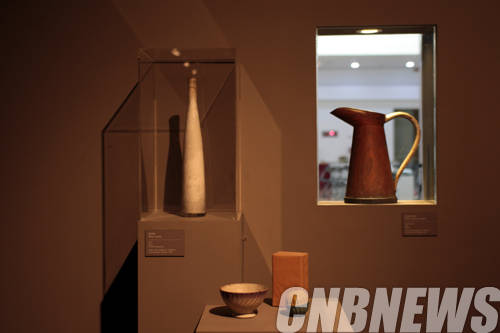▲국립현대미술관 덕수궁관에 설치된 조르조 모란디가 작업에 모델로 삼은 여러 종류의 병 들.(사진=왕진오 기자)