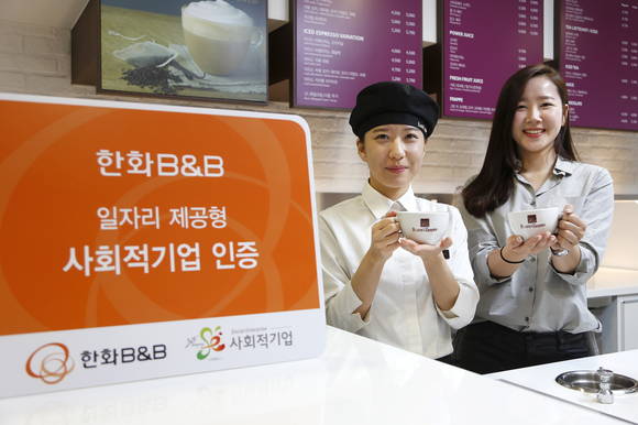 ▲한화B&B가 대기업 최초로 고용노동부의 ‘일자리 제공형 사회적기업’ 인증을 획득했다(사진 제공: 한화B&B)