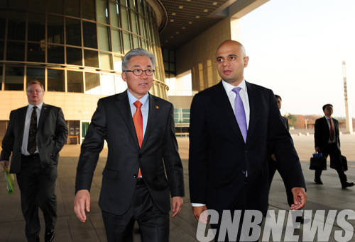 이날 김종덕 문화체육관광부 장관과 사지드 자비드 영국 문화미디어체육부(DCMS) 장관이 함께 행사장으로 이동하고 있다.