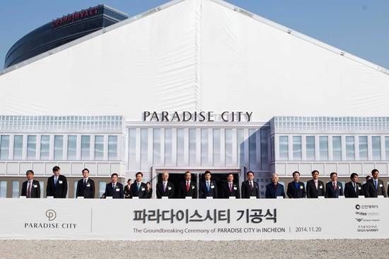 파라다이스세가사미는 20일 인천 영종도에 총 사업비 1조3000억원(1단계), 대지면적은 20만3041㎡(전체 대지면적 33만㎡)인국내 최초 글로벌 복합리조트(IR=Integrated Resort) '파라다이스시티'의 기공을 위한 첫 삽을 떴다.