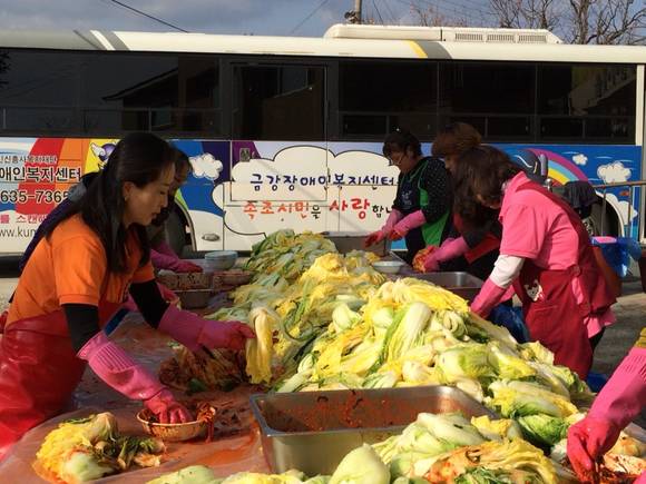 이번 김장김치 행사는 금강장애인복지센터와 금강반야마을 직원 및 자원봉사자 총 30명이 추운 날씨에도 불구하고 비지땀을 흘려가며 배추 700포기를 갖은 양념과 정성을 다해 맛있는 김장김치를 만들었다.