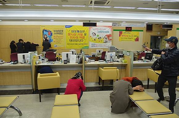 이날 모의훈련이 실시된 객장에서는 방범장비 소개·실습, 평택시지부 직원과 경찰서·경비회사의 대응조치 시범을 보인 후 곽정기 경찰서장의 강평을 통해 사고예방을 위한 개선사항에 대해 토의 했다.
