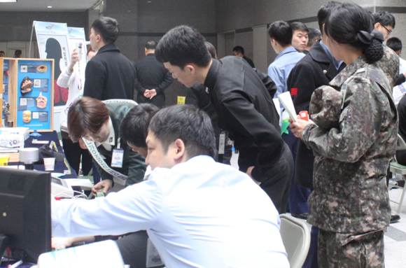 2014년도 국민건강증진기금 민간경상보조사업 수행기관인 한국건강관리협회 부산센터(본부장 조승진)는 지난 24일 해군작전사령부 군인을 대상으로 폐 나이 측정 등 건강증진을 위한 캠페인을 가졌다. 이 행사는 국군부산병원이 주최하고 해군작전사령부 의무대가 함께했다. (사진제공=건협 부산센터)