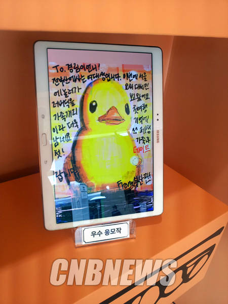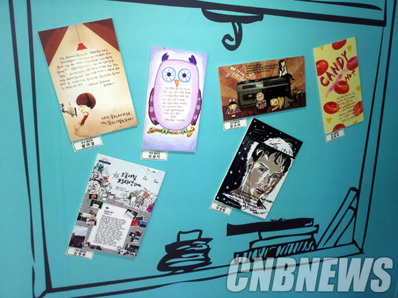 디지털 엽서 형식으로 작성한 S펜 부문과 손으로 직접 작성한 아날로그 엽서 형식의 일반 부문 작품이 함께 전시된다. 전시회는 다음달 4일까지 서울 종로구 삼청동에 마련된 갤럭시 노트4 팝업 갤러리에서 열린다. 사진은 이번 전시에 출품된 작품들.