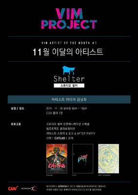 스튜디어 쉘터의 작품 중 일부는 11월 한 달간 CGV홍대 상영관 내 대형 스크린X를 통해 상영돼 왔다. 또한 오는 28일에는 이 조각들을 모두 모아 완성된 작품으로 상영하는 미디어 감상회를 개최한다.