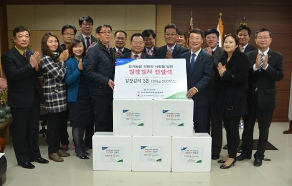 (사)우리농업지키기운동본부 경기본부(본부장 송명규)와 경기농협(본부장 조재록)은 26일 지역본부 본부장실에서‘사랑의 김장김치 나눔’행사를 가졌다.