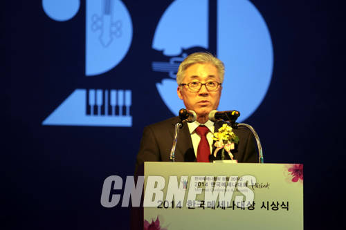 ▲26일 오후 서울 중구 웨스틴조선호텔에서 ‘2014 한국메세나대회’가 열려 문화예술 발전에 공헌한 기업과 기업인들을 포상하는 ‘메세나대상 시상식’이 개최됐다. 이날 김종덕 문화체육관광부 장관이 축사를 하고 있다 .(사진=왕진오 기자)