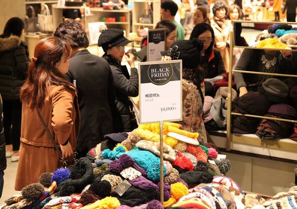 블랙프라이데이 행사는 지하 1층과 1층 행사장에서 동시에 진행되며 앤클라인, 빈치스벤치, 만다리나 덕 등 여성 핸드백 브랜드를 포함해 총 25개 브랜드가 참여, 총 45억원의 물량을 준비해 고객잡기에 나선다.