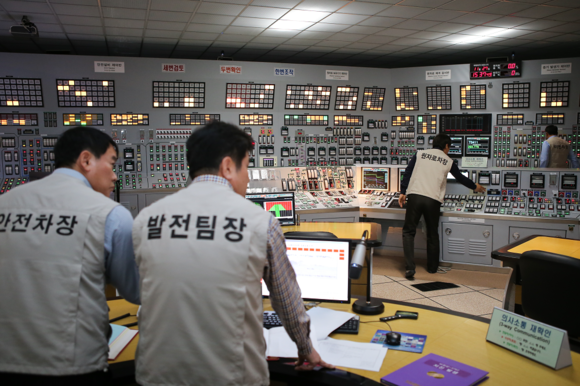 ▲중대사고 훈련상황의 시뮬레이터실 내부 모습. (사진제공=고리원자력본부)