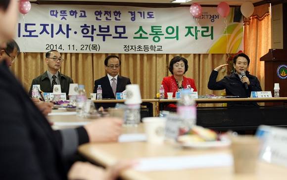 남경필 지사는 지난 27일 수원 정자초등학교에서 ‘경기도비 학교특별지원사업’에 대한 학부모 의견을 듣는 ‘경기도지사·학부모 소통의 자리’ 간담회를 주재했다.