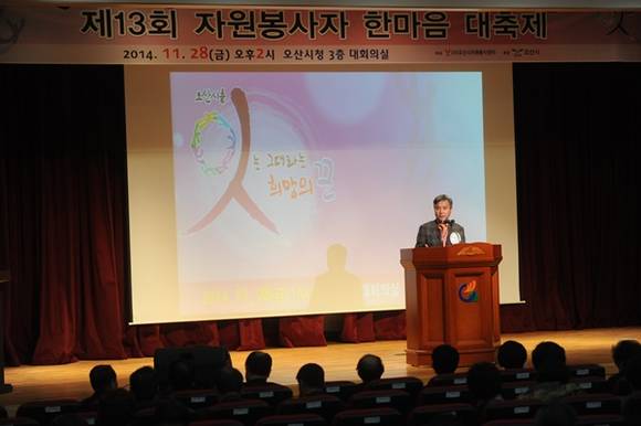 2014년 자원봉사자의 날 기념으로 개최된 이번 행사는 곽상욱 오산시장을 비롯해 문영근 오산시의회의장, 시·도의원, 유관기관장 등 내빈과 자원봉사 관계자 등 500여명이 참석한 가운데 성황리에 개최됐다.