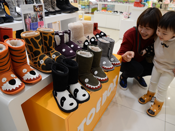 롯데백화점 부산본점 6층 토박스 매장에서는 동물 캐릭터가 새겨진 아동용 방한화를 선보이는 가운데, 매장을 방문한 엄마와 아이 고객이 이를 살펴보고 있다. (사진제공=롯데백화점)