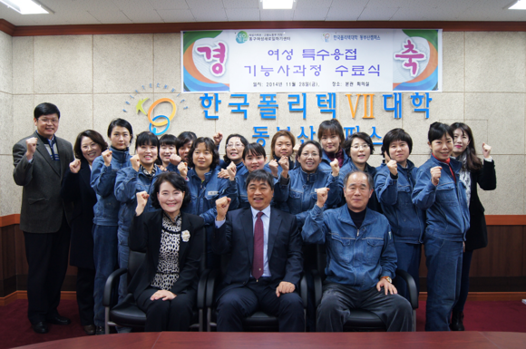 정주식 산학협력처장은 축사에서 “남성도 하기 어려운 용접을 실습장에서 열심히 익히는 여러분의 모습을 보면서 우먼파워가 정말 대한함을 느꼈다. 그동안 배우고 익힌 기능으로 제2의 직장에서 성실하게 생활해 인정받는 기능인이 되길 바란다” 고 격려의 뜻을 전했다.