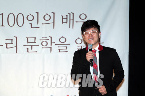 ▲2일 오후 서울 종로구 동숭로 예그린씨어터에서 열린 EBS '100인의 배우, 우리 문학을 읽다' 기자간담회에 사회자로 참석한 개그맨 김학도가 행사 소개를 하고 있다.(사진=왕진오 기자)