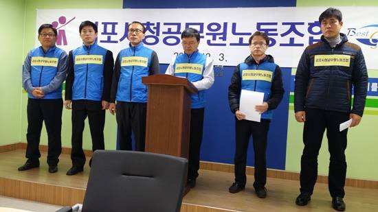 오는 12월 30일 출범을 앞두고 있는 김포시공무원노조(위원장 김영선)는 3일 김포시의회 브리핑룸에서 기자회견을 갖고 민원인의 폭행으로 두 명의 공무원이 목을 조이는 등 상해를 당했다며 재방방지를 위한 요구사항을 발표했다.