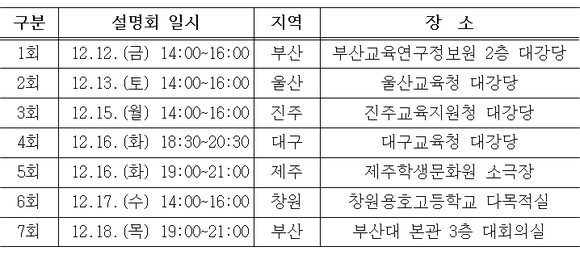 ▲부산대 2015학년도 정시 입학설명회 일정. (표제공=부산대)