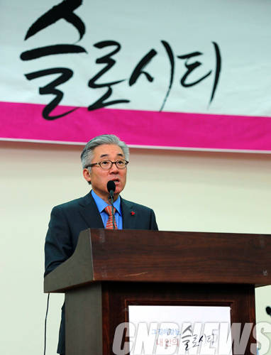 ▲3일 서울 영등포구 국회 의원회관에서 ‘그 길의 감동, 내 안의 슬로시티 세미나’가 열렸다. 이날 참석한 김종덕 문화체육관광부 장관이 축사를 하고 있다.(사진=문화체육관광부)