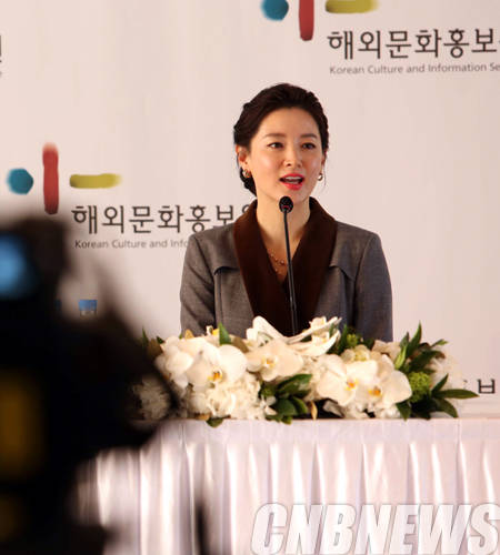 이날 참석한 한-아세안 특별정상회의 홍보대사인 이영애씨가 아세안 언론인들의 질문에 답변을 하고 있다.