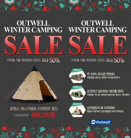 아웃웰코리아 관계자는 "캠핑용품 구매는 지금이 기회"라며 "현재 아웃웰코리아는 지마켓과 11번가, 옥션에서 올해의 마지막 크리스마스 세일 이벤트를 진행 중이다. 저렴한 가격으로 품질 좋은 제품을 구매 가능하기에 겨울철 캠핑을 준비하는 사람은 이번 기회를 놓쳐서는 안될 것"이라고 전했다.