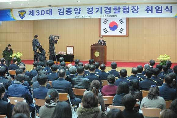 김종양 (만53세. 치안정감)신임 경기지방경찰청장이 300여 직원들이 참석한 가운데 4일 본청 대강당에서 취임식을 가졌다.