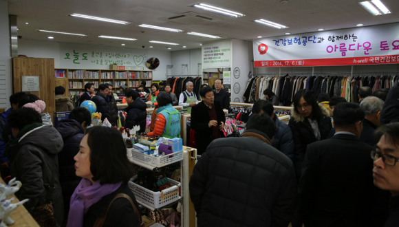 (CNB=최원석 기자) 국민건강보험공단 부산지역본부(본부장 조진호) 건이강이봉사단이 6일 부산도시철도 1호선 명륜역 내 아름다운 가게에서 소외된 이웃을 돕기 위한 ‘아름다운 나눔을 위한 바자회’ 행사를 열었다.
