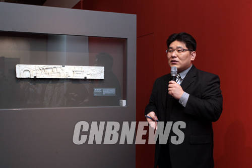 ▲8일 서울 이촌동 국립중앙박물관 기회전시실에서 '로마제국의 도시문화와 폼페이'전 설명회가 열렸다. 이날 공개된 폼페이 화산 폭발 장면을 담은 프레스코를 국립중앙박물관 구문경 학예연구사가 설명하고 있다.(사진=왕진오 기자)